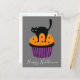 Gato preto bonitinho de Halloween no cupcake. Cores temáticas em preto e laranja. Tema de giz gótico bonito.