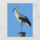 Caça branca sobre polo elétrico ao fundo do céu azul.