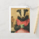 Um adorável texugo fica em sua cozinha vestindo um avental bolinhas e segurando uma xícara de café gerada pela IA