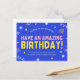 Cartão de Aniversário Tipográfico Amarelo-Rosa e Azul