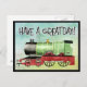 Tenha um garoto de aniversário moderno de excelente, locomotiva de festa verde poster criatividade decoração cartão postal