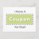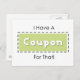 Design de cupom verde e preto com o engraçado ditado que tenho um cupom para isso! Um presente de excelente para aqueles cortadores de cupons em sua vida que gostam de economizar dinheiro cortando cupons para comprar compras.