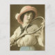 Vintage colorizou a fotografia de uma jovem bonito segurando uma raquete de tênis.