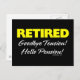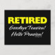 Aposentado: Adeus Tensão Alô Pensão! Testemunhas e engraçadas Aposentaduras Dizendo / Citação para qualquer um que esteja se aposentando. Texto/fonte amarelo e branco.