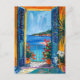 Illustrated view from terrace window overlooking the Mediterranean Sea.