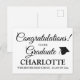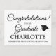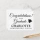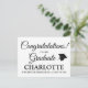 Parabéns ao nosso formando personalizado script elegante cartão postal de anúncio de graduação. Texto preto totalmente personalizável, fundo branco sólido e plano. Com um boné de formatura por cima. Sinal de tipografia moderna elegante, excelente para crianças e adultos. Personalizável para jardim de infância, escola primária, ensino médio, segundo grau e faculdade.