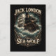 A dramatic nautical illustration of a hardened sea captain steering through storm-tossed waves, inspired by Jack London’s classic tale of survival and the wild sea.