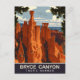 Cartaz do Parque Nacional Bryce Canyon, Utah. Vista sobre a formação de martelos de Thor. Cartaz viagem em cor laranja e vibrante.