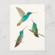 Postcard for hummingbird lovers featuring a hand-painted Versicolored Emerald Hummingbird and two Rufous-tailed Hummingbirds.