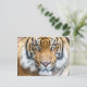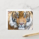 Feche a face de um tigre, onde o tigre está olhando diretamente para você e suas marcas laranja e listradas pretas são mostradas em vibrações e detalhes no excelente. Uma carta divertida para amantes de animais e da vida selvagem.