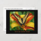 Este cartão-postal apresenta uma borboleta do Swallowtail do Tigre Oriental que se iluminou num dia amarelo laranja e ouro contra um fundo verde luminoso.