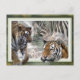 Belo impressão de arte digital com dois tigres com um efeito 3D aparentando saltar do quadro. Lado de fundo com girafa e zebra. A maravilhosa arte animal selvagem faz uma maravilhosa ideia de presente para amantes da vida selvagem.