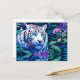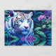 tigre branco de olhos azuis em folhas tropicais e flores roxas AI Art por minx267