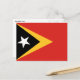 Bandeira de Timor-Leste. A bandeira de Timor Leste foi adotada em 2002. É o mesmo que a bandeira de 1975. À meia-noite do dia 19 de maio, e durante os primeiros momentos do Dia da Independência, 20 de maio de 2002, a bandeira das Nações Unidas foi derrubada e a bandeira de um Timor-Leste independente foi erguida. De acordo com a Constituição da República Democrática de Timor Leste, Parte I, Seção 15: "A bandeira nacional é retangular e é formada por dois triângulos isósceles, cujas bases se sobrepõem. Um triângulo é preto e sua altura é igual a um terço do comprimento sobreposto ao triângulo amarelo, cuja altura é igual a metade do comprimento do sinalizador. No centro do triângulo negro há uma estrela branca de cinco pontas, o que significa a luz que guia. A estrela branca tem uma das pontas viradas em direção à extremidade esquerda da bandeira. A parte restante da bandeira é vermelha.".
