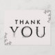 Este obrigado de tipografia floral que você faz é perfeito para um casamento elegante. A design romântica apresenta uma simples inscrição decorada com flores, uma cobertura botânica e um sutil fundo de pincel. Personalize a parte traseira do cartão postal com seus nomes, seu endereço de devolução e uma mensagem de obrigado. Como alternativa, deixe o vazio da seção modelo para enviar uma nota personalizada e ponderada em cada cartão após a sua chegada. Essas cartas podem ser usadas para um casamento, chá de panela ou qualquer evento especial.