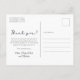 Elegante Script Moderno Newborn Baby Photo Obrigado Cartão-Postal. Possui um belo texto "obrigado" em um texto escrito à mão, caligrafia ou texto de cobertura de fotos tipográficas. No verso, uma mensagem pessoal pré-feita em preto e branco. Fácil de personalizar com sua foto de bebê e detalhes.