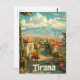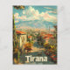 Uma representação vibrante e colorida de Tirana, capital da Albânia, mostrando a sua mistura de arquitetura histórica e moderna. O design apresenta marcos notáveis, ruas movimentadas e paisagens animadas de cidades, todas ilustradas em um estilo nostálgico e retrô. Esta trabalho de arte capta o espírito dinâmico e o encanto único de Tirana, convidando os espectadores a descobrir sua diversidade cultural.