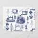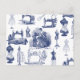 Este produto apresenta meu design de "Vintage Sewing Toile" em azul. Ele retrata várias máquinas de costura, tesouras, uma senhora vitoriana que está costurando as mãos e também manequins de corset e de vestido, assim como um manequim que foi equipado com uma saia-forte.