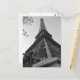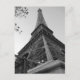 Aqui está a Torre Eiffel de Paris, França a preto e branco. A foto nos dá uma perspectiva interessante da famosa atração.