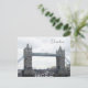 Vista da ponte torre no rio Tamisa com o texto "Londres" na coluna direita da ponte