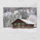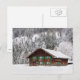 Cartão postal de uma tradicional casa de madeira com persianas verdes numa floresta no inverno, na Baviera, na fronteira entre a Alemanha e a Áustria.