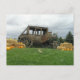 Este cartão indica as abóboras que sentam-se em torno dos pacotes de feno com uma réplica de um treinador do palco do oeste velho estacionado proeminente no centro. Aperfeiçoe para aquelas notas sucintas ou mensagens na queda aos amigos e à família.