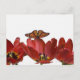 Cartão Postal Três tulipas vermelhas e uma borboleta monarca con