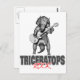 Humor de dinossauro com Tricerátops tocando violão elétrico e a legenda Tricerátops Rocks.