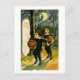 Vintage Halloween ilustrando um cartão de saudação mostrando uma criança olhando para um jack o'lantern na janela.