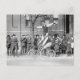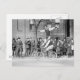 Foto antiga de Herbert Bell & Joe Garso, ciclistas de truques de uma perna, fazendo truques de bicicleta para uma multidão. Fotografia tirada em 1921.