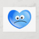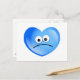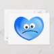 Coração azul de cartoon bonito com um olhar triste e solitário no seu rosto.