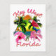 Um legal design de ilha tropical para lembrar suas férias em Key West Florida. Um pôr do sol oceânico com um papagaio entre as palmeiras.