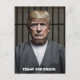 Trump preso atrás das grades com tipografia Trump Na Cadeia vestindo uniforme cinza de prisioneiro