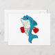Cartão Postal Tubarão como boxeador com luvas de boxe