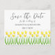 Tulipas amarelas flores aquarela, cartões-postais de casamento Save the date. Natureza, botânica, flores da primavera. Flores amarelas. Pintura original em aquarela da artista Monika Howarth. Design de flores do Texas.