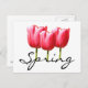 Celebre a Primavera com este cartão postal que exibe um trio de túlipas cor-de-rosa com um design de texto "Primavera".