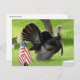 Homem Patriótico Turquia exibindo suas penas de cauda em frente a uma bandeira americana