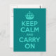 Cartão Postal Turquesa e Teal Manter Calmo e Continuar