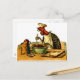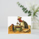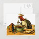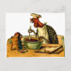 Ilustração vindimada de um peru no chapéu de cozinheiro e mistura ingredientes enquanto lê uma receita. Um cartão tem o início de um convite de festas ( você é convidado para uma festa - eu sou cozinhar). Este é muito divertido.