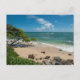 Uma bela fotografia mostra uma praia havaiana arenosa encontrando água turquesa.
