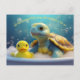 Cartão Postal Turtle and Rubber Duck in the Bath Custom Text