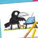 Um pequeno corvo se senta numa máquina de escrever.