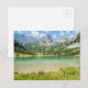 Uma fotografia do Seebensee em frente à Cordilheira de Mieminger, em Ehrwald, Tirol, Áustria, está neste cartão-postal.