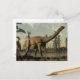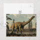 Uberabatitan dinossaur caminhando no lago entre árvores de tempestade e plantas de oniquiopsis