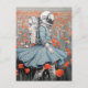 Cartão Postal um astronauta vestido de azul andando em papoulas