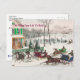 Uma pintura vintage divertida de uma corrida de trenó aberta. Você pode personalizar a saudação de Natal, seu endereço de retorno e seus nomes no script próximo à parte inferior com espaço para adicionar uma nota pessoal manuscrita.