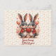 Um belo par de coelhos declarando seu amor um pelo outro com um coração vermelho fofo. O fundo dos corações pálidos completa a imagem.