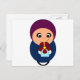 Cartão Postal Um desenho animado de hijab hijabi roxo, menina mu