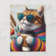 Arte gerada por IA de um gato adorável vestindo um suéter segurando um café