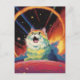 Cartão Postal Um Gato Branco Fofo no Espaço
